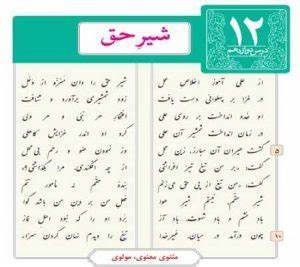 املاء کلاسی از درس های ترم دوم برگزار شد. درس ۱۲، ” شیر حق” با معانی و مفهوم تدریس شد.