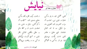 از روی شعر نیایش خوش خط و خوانا و بدون غلط املایی رونویسی کنید. معنی کلمات زیر را از آخر کتاب پیدا کنید و آن ها را در دفتر خود بنویسید.